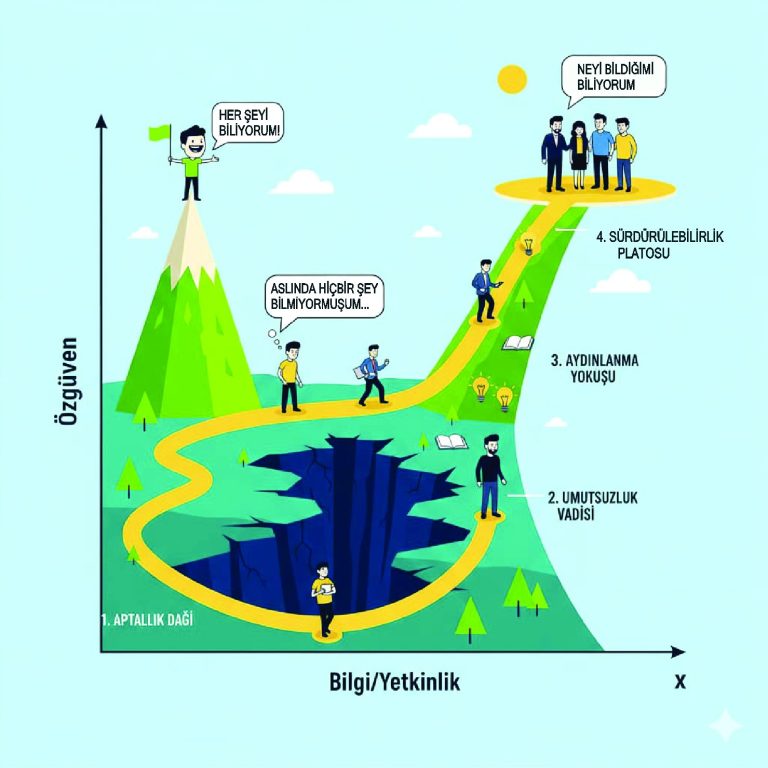 1999’da sosyal psikologlar David Dunning ve Justin Kruger, "Nedir bu her şeyi bildiğini sananların bitmek bilmeyen özgüven kaynağı?" diye merak edip bir araştırma yapmışlar. Sonuç biraz ironik: Bir konuda en az bilgiye sahip olanlar, kendilerini konunun zirvesinde görüyorlar. Neden mi? Çünkü neyi bilmediklerini fark edecek kadar bile alanın içinde değiller. Bu duruma bugün "Dunning–Kruger etkisi" diyoruz ama kısaca "bilgi azaldıkça artan tuhaf bir emin olma hali" de diyebiliriz.